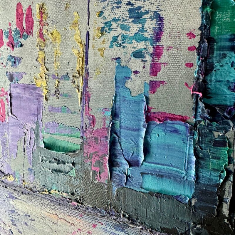 Obraz kolorowy ręcznie malowany na płótnie “Pastelowe miasto” 2074A