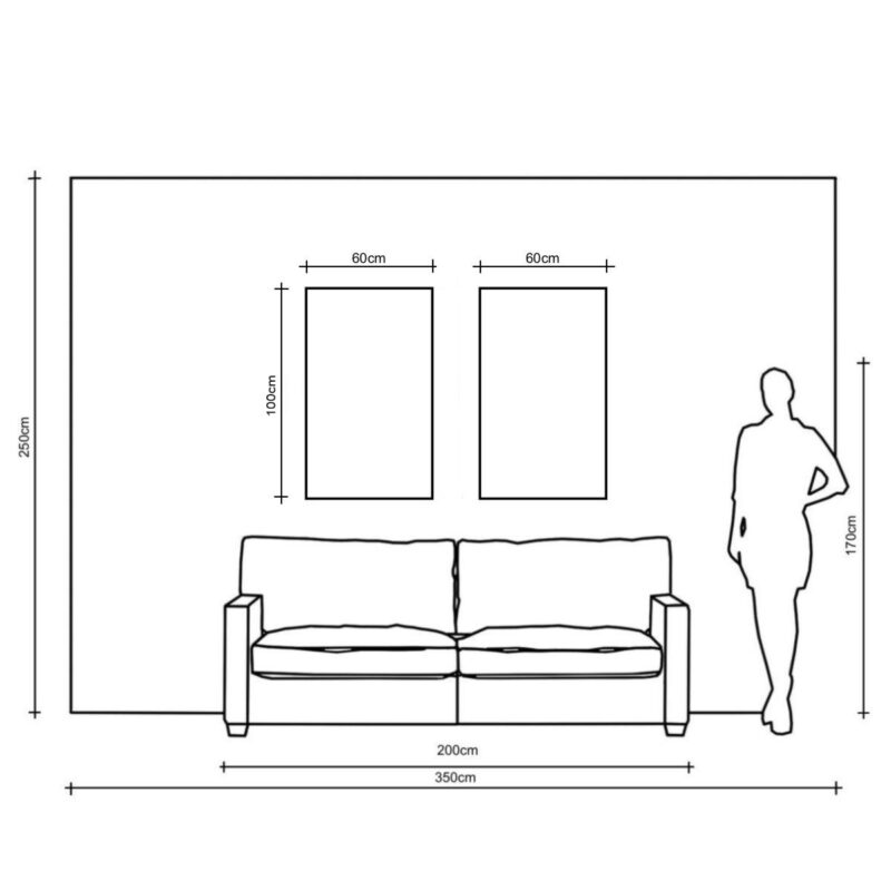 Ten nowoczesny dyptyk abstrakcyjny opiera się na architektonicznej geometrii i czystych podziałach kolorystycznych. Każda część może funkcjonować samodzielnie, ale razem tworzą mocną, harmonijną kompozycję.
